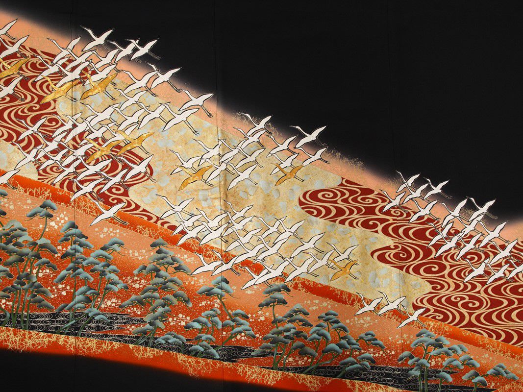 ※「五三桐」の紋が背紋1つ、前胸紋2つ、後ろ袖紋2つの5つ紋で入っております。