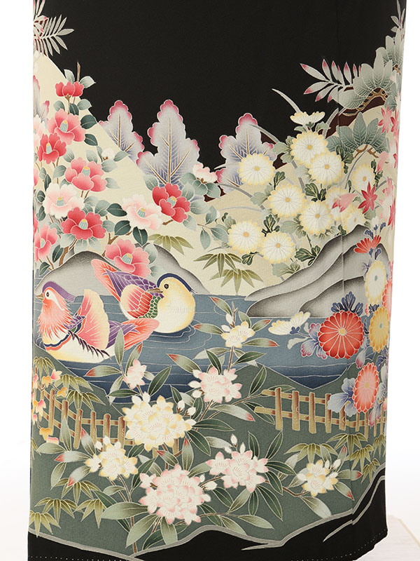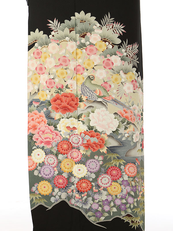 黒留袖: 京友禅 孔雀 菊 流水