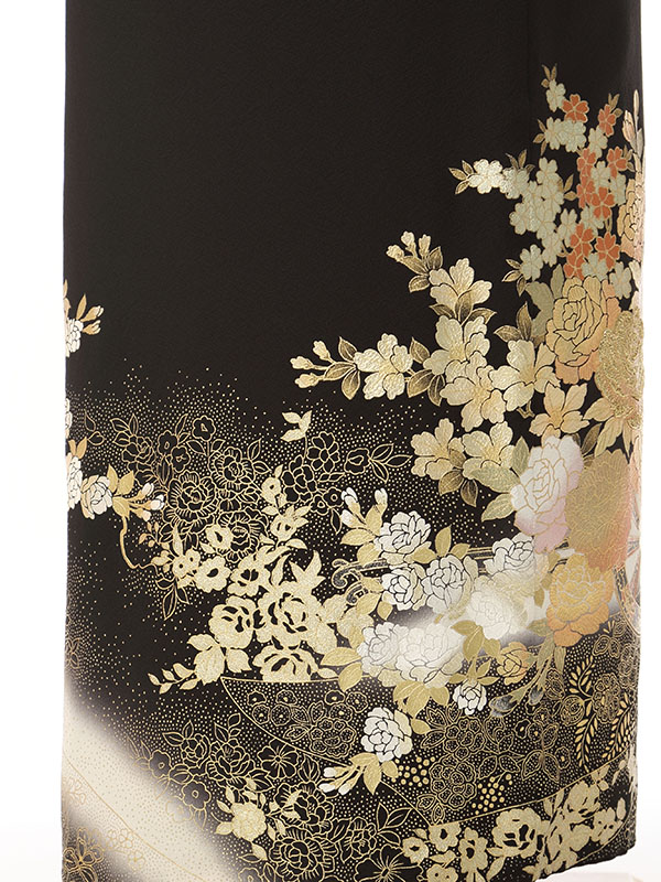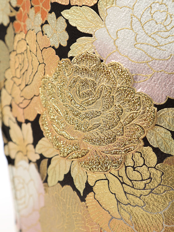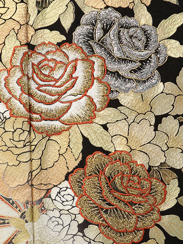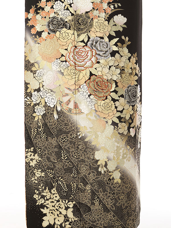 黒留袖: 桂由美 刺繍のバラ 花車・小花
