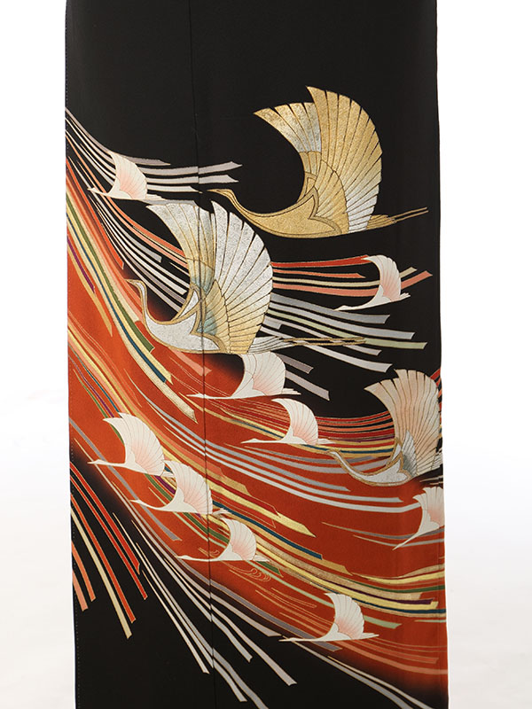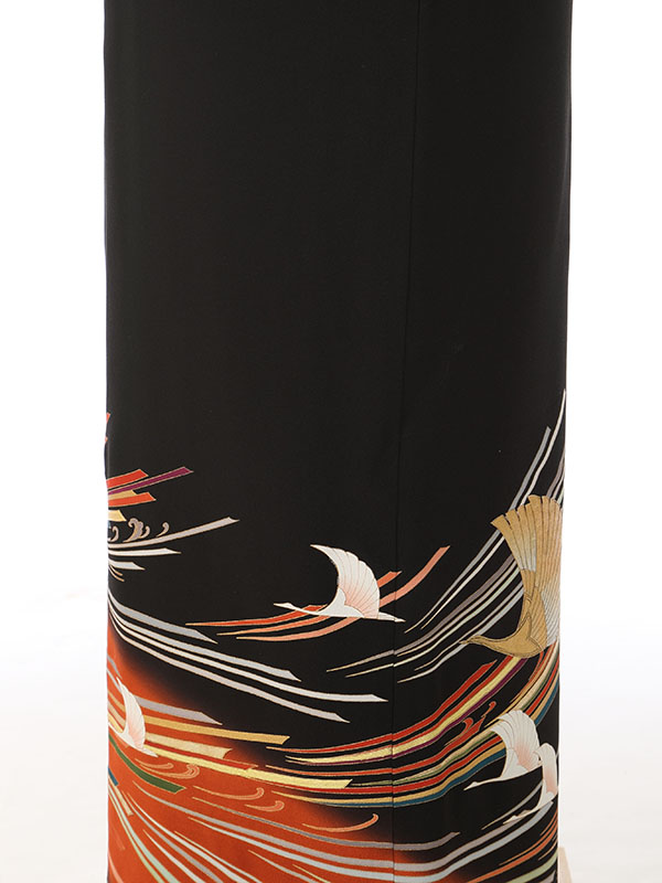 黒留袖: エンジぼかし 千羽鶴 流水