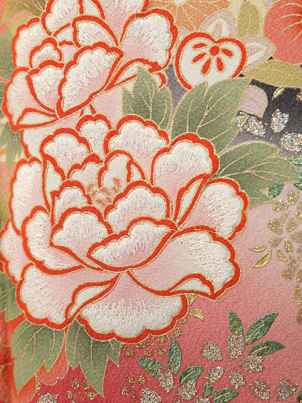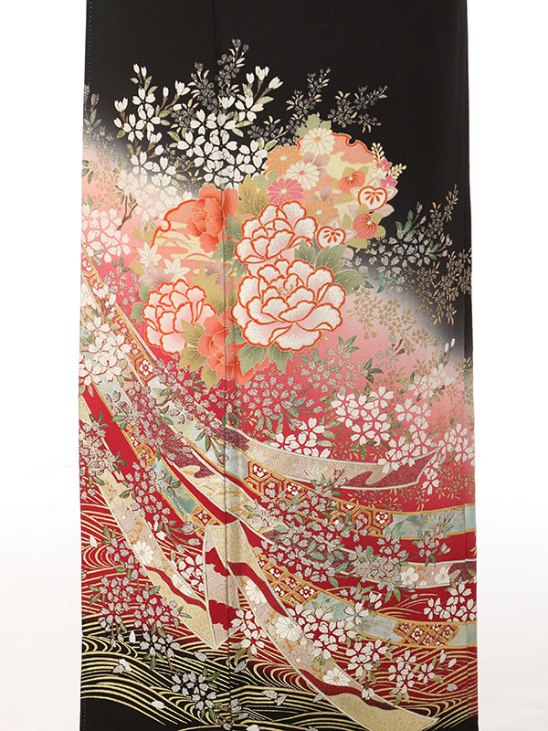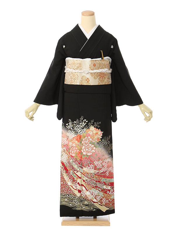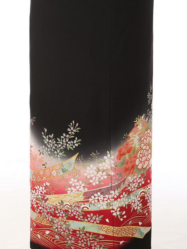 黒留袖: 赤ぼかしラメ のしめ 小桜 牡丹