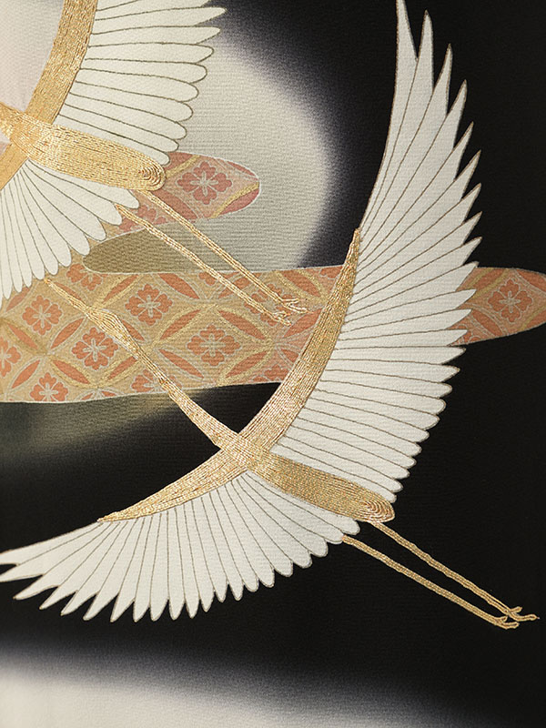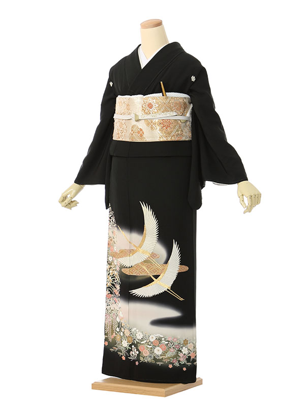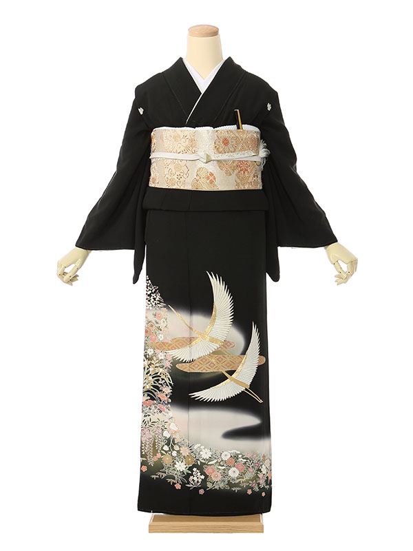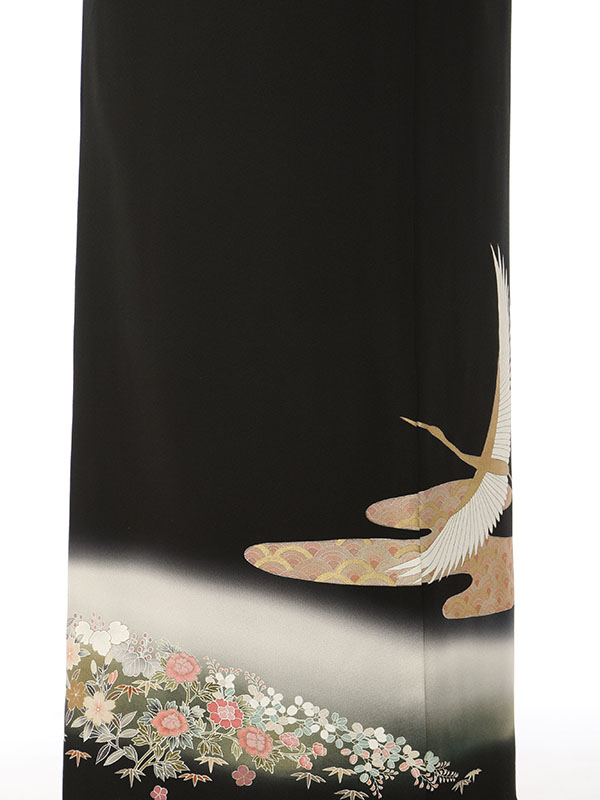 黒留袖: 鶴 ぼかし 小花(巾広)