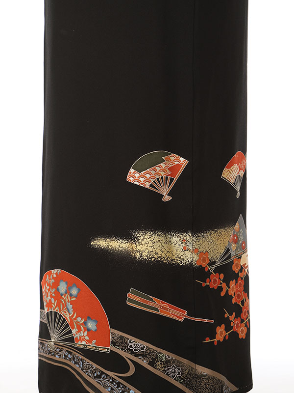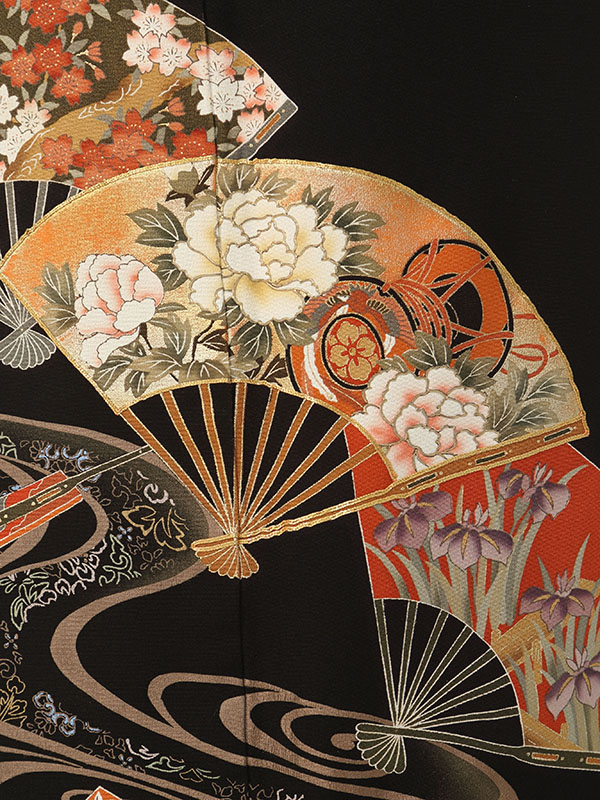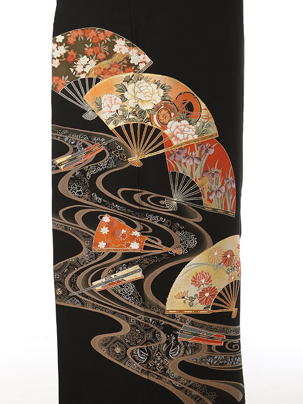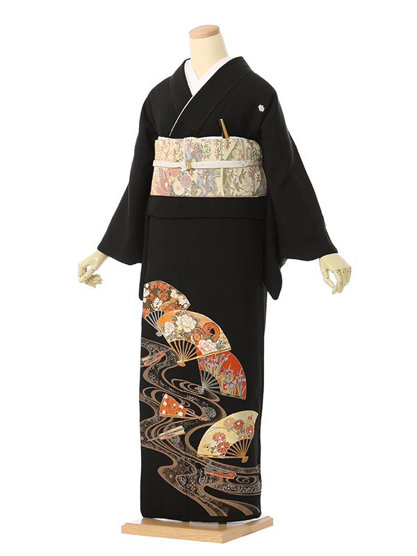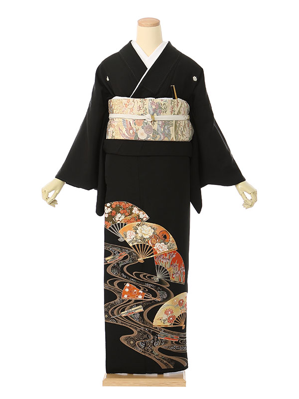 黒留袖: 扇面の中桜つづみ 流水(巾広)