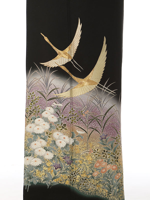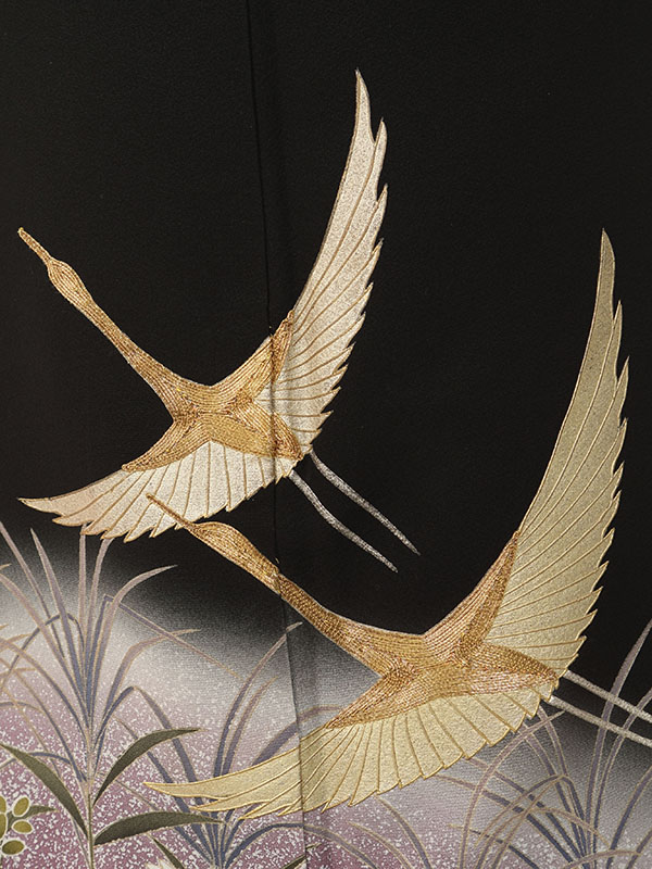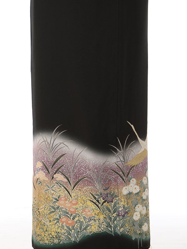 黒留袖: 金鶴 すすき 緑と紫のぼかし(巾広)