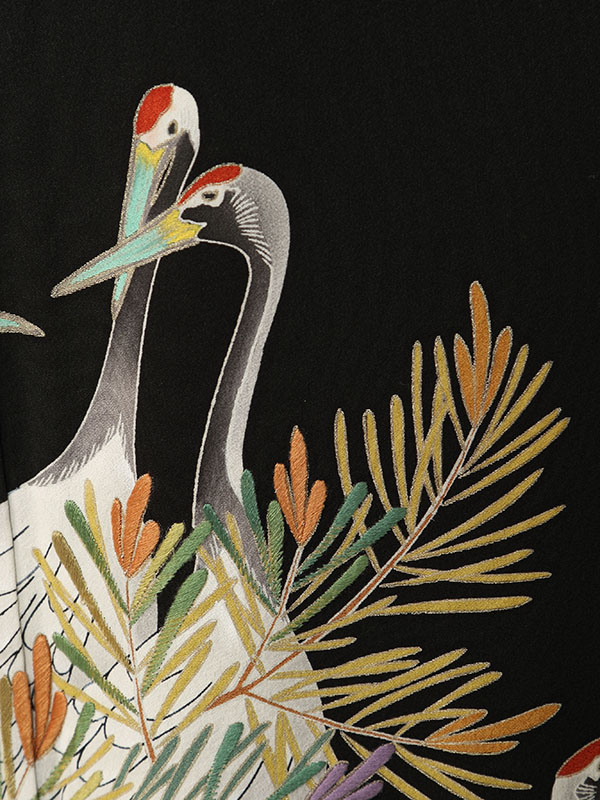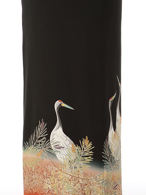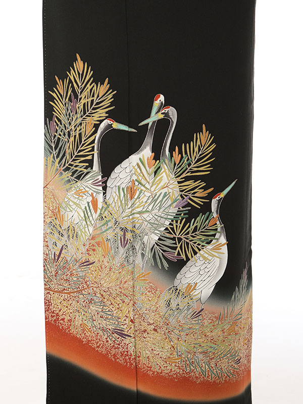 黒留袖: 立鶴 若松 エンジぼかし