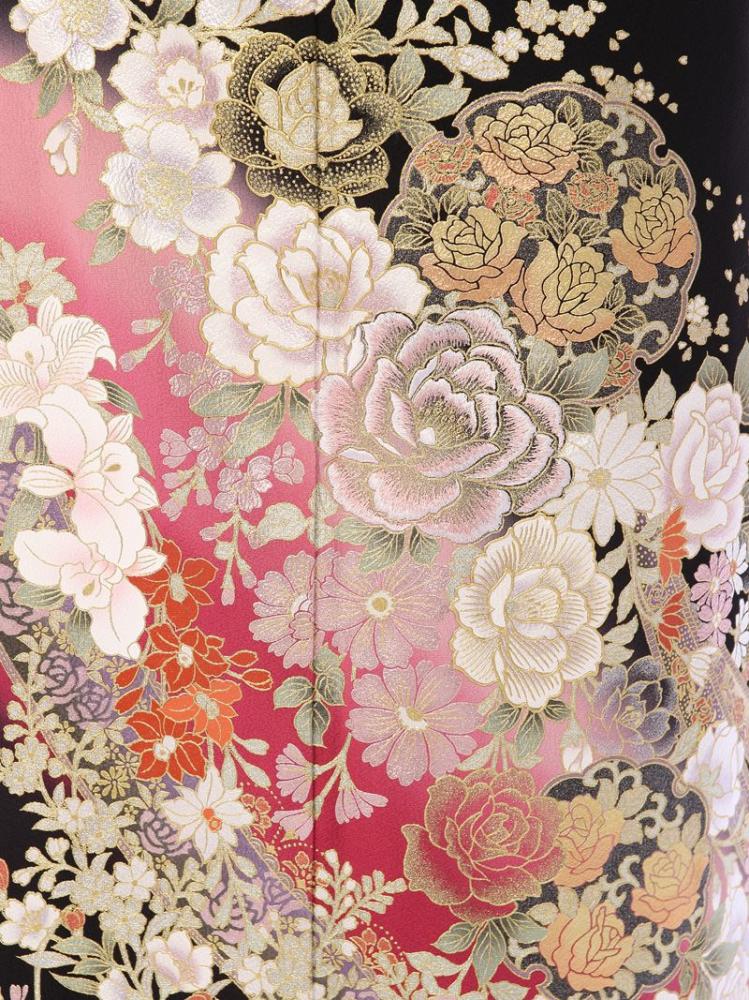 金彩 銀彩を美しく配した薔薇模様が華やかな友禅留袖です