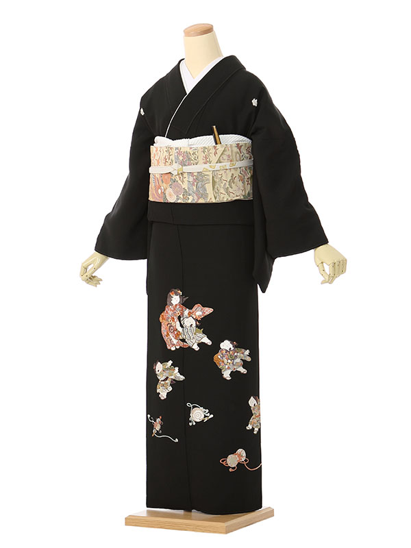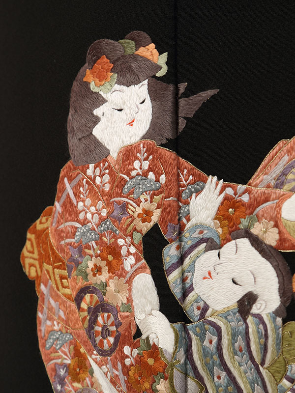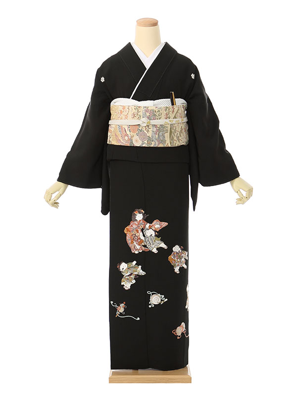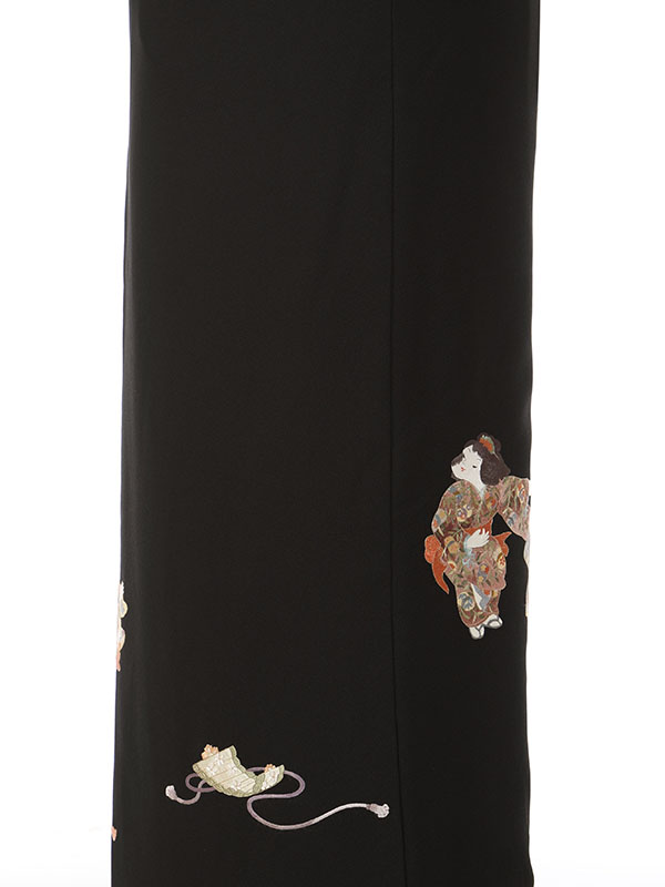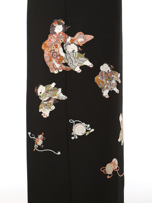黒留袖: 刺繍の童子7人 太鼓 笛 鼓