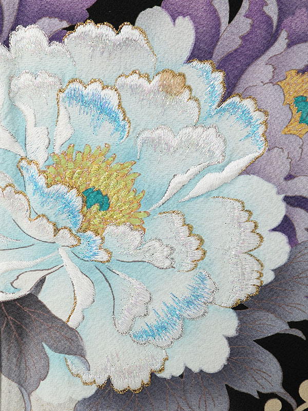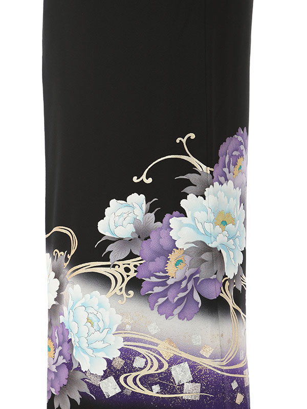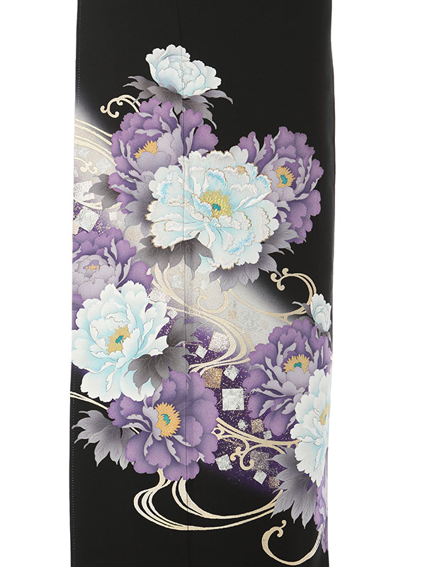 黒留袖: 桂由美 紫ぼかし流水 紫と水色の牡丹