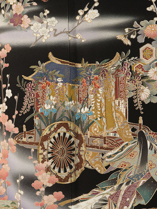 ※「五三桐」の紋が背紋1つ、前胸紋2つ、後ろ袖紋2つの5つ紋で入っております。
