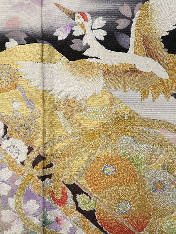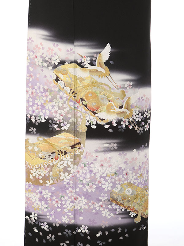 黒留袖: 紫ぼかし 宝びつ 鶴 桜