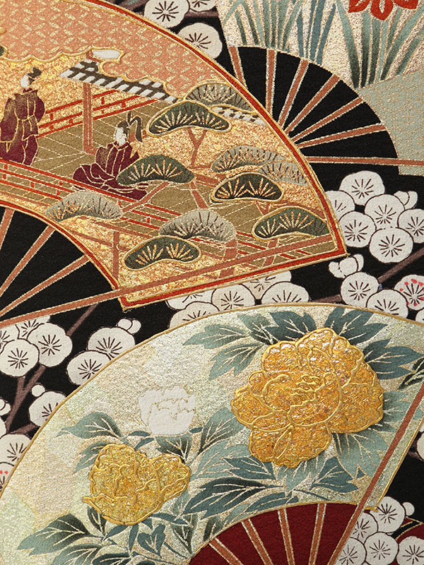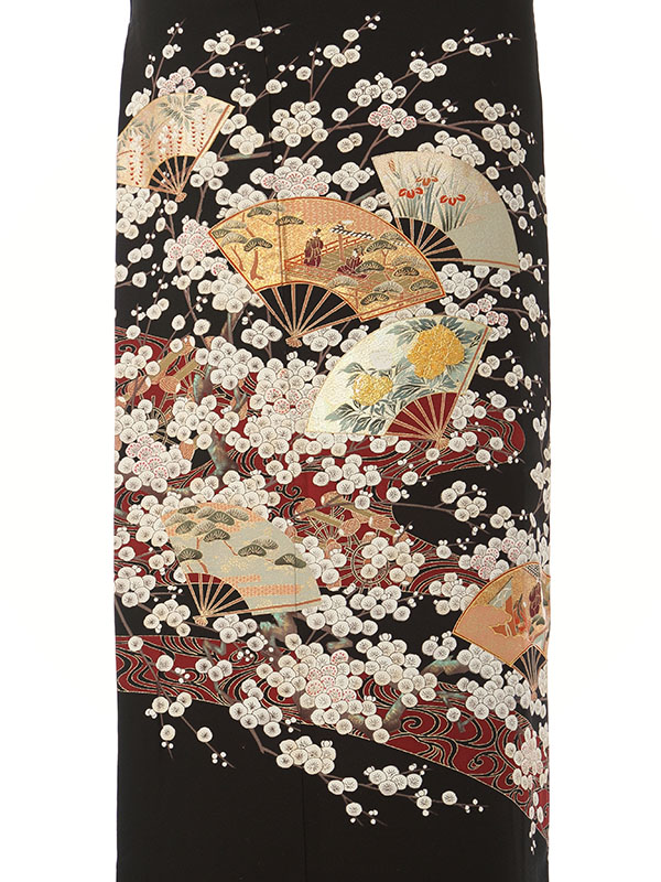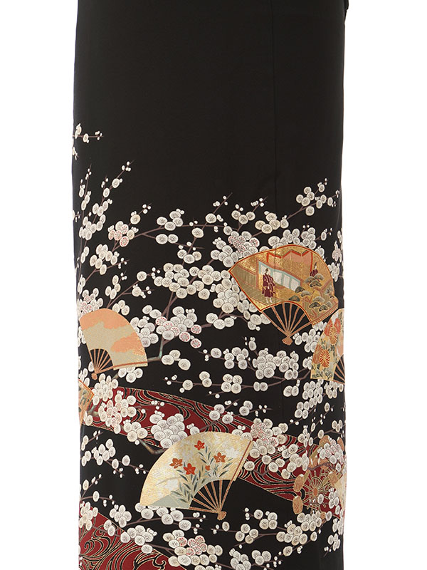 黒留袖: 茶雲取白小梅花扇