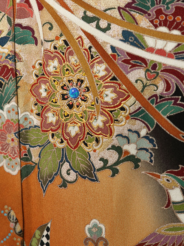 ※「五三桐」の紋が背紋1つ、前胸紋2つ、後ろ袖紋2つの5つ紋で入っております。