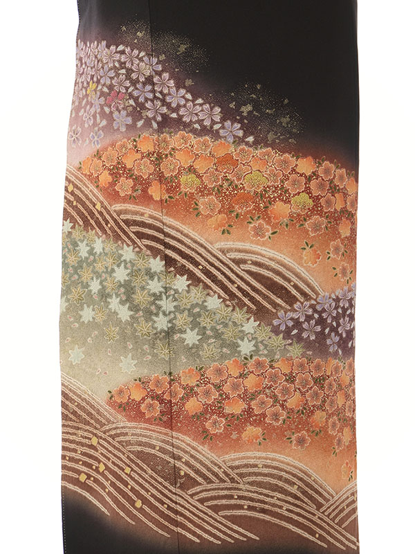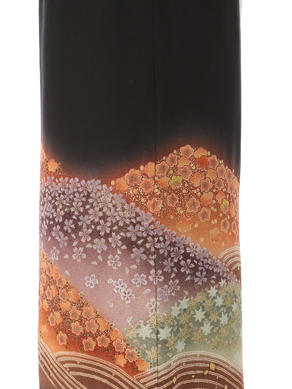 黒留袖: 茶青海波 緑紅葉 赤紫桜 梅