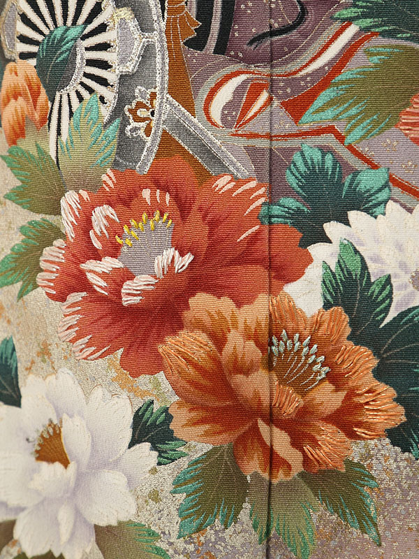 ※「五三桐」の紋が背紋1つ、前胸紋2つ、後ろ袖紋2つの5つ紋で入っております。