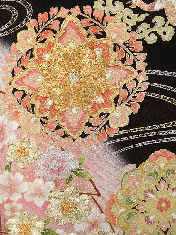 ※「五三桐」の紋が背紋1つ、前胸紋2つ、後ろ袖紋2つの5つ紋で入っております。
