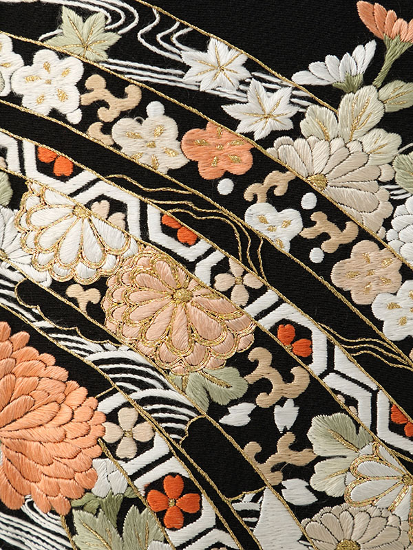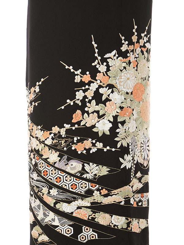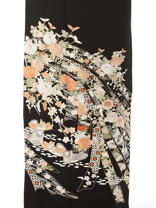 黒留袖: 手刺繍 おしどりに菊熨斗目文