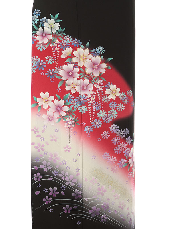 黒留袖: ローズ 秋桜 藤 流水