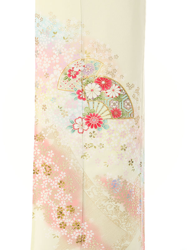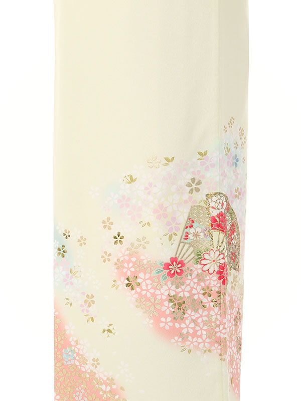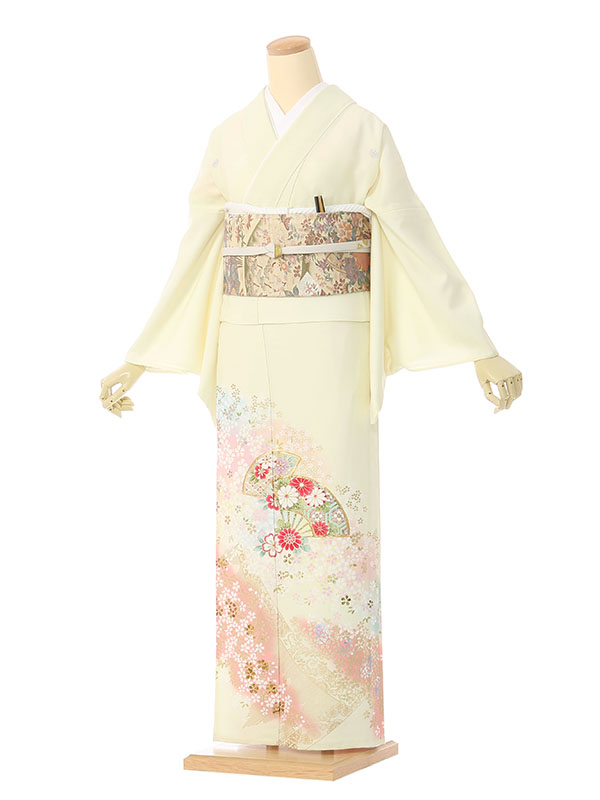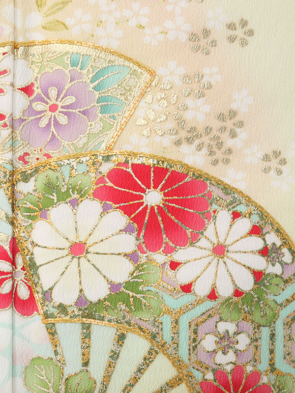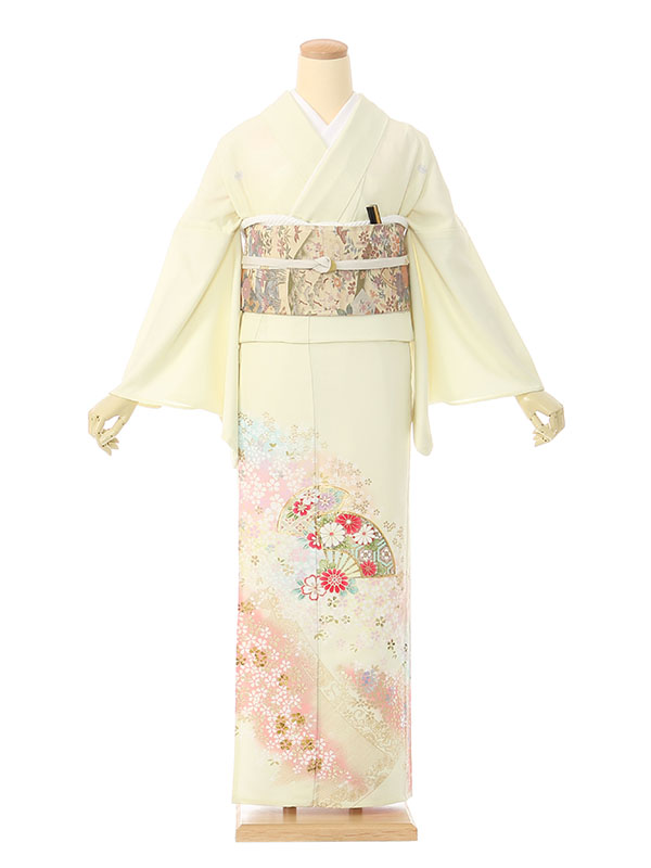 色留袖: 単衣 薄黄色地 百花 末広 几帳