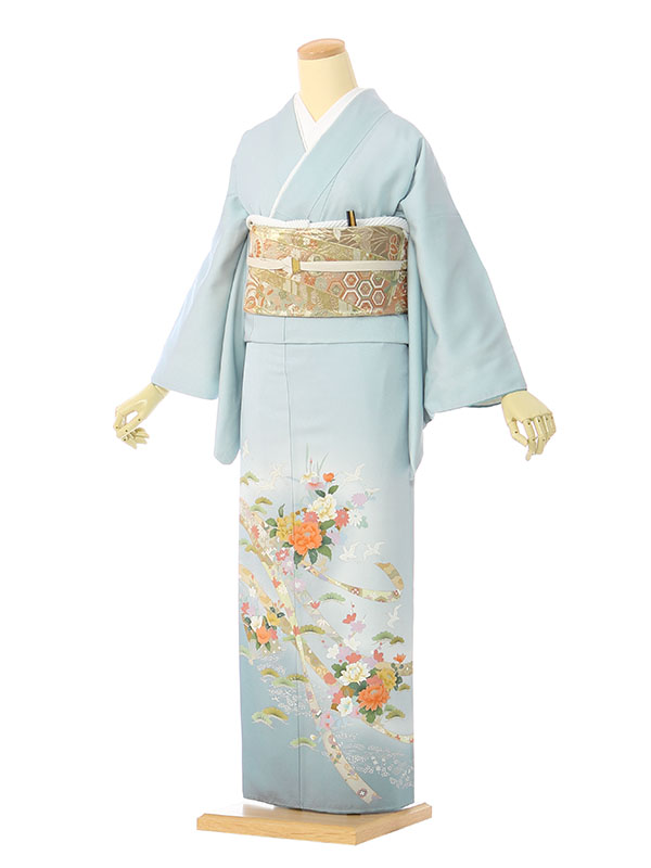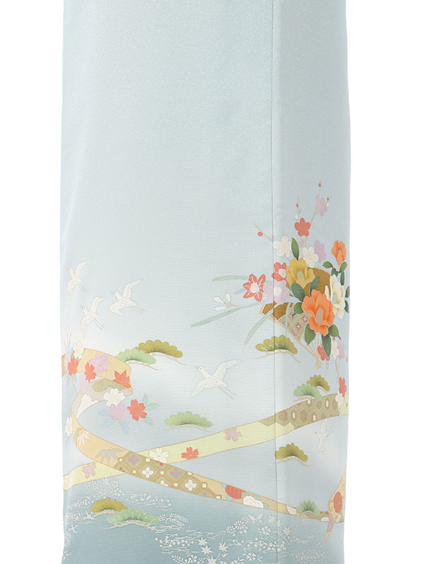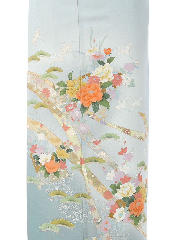 色留袖: 水色系裾濃いぼかし道長扇子に小花
