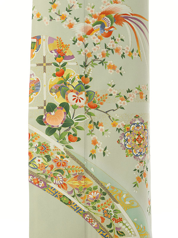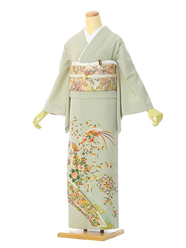 色留袖: 若草地 鳳凰 たちばな 桜裾道長