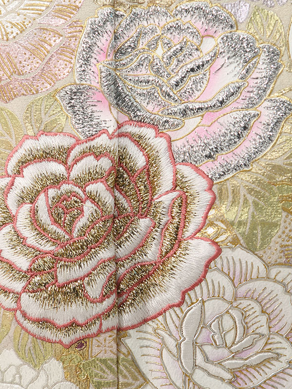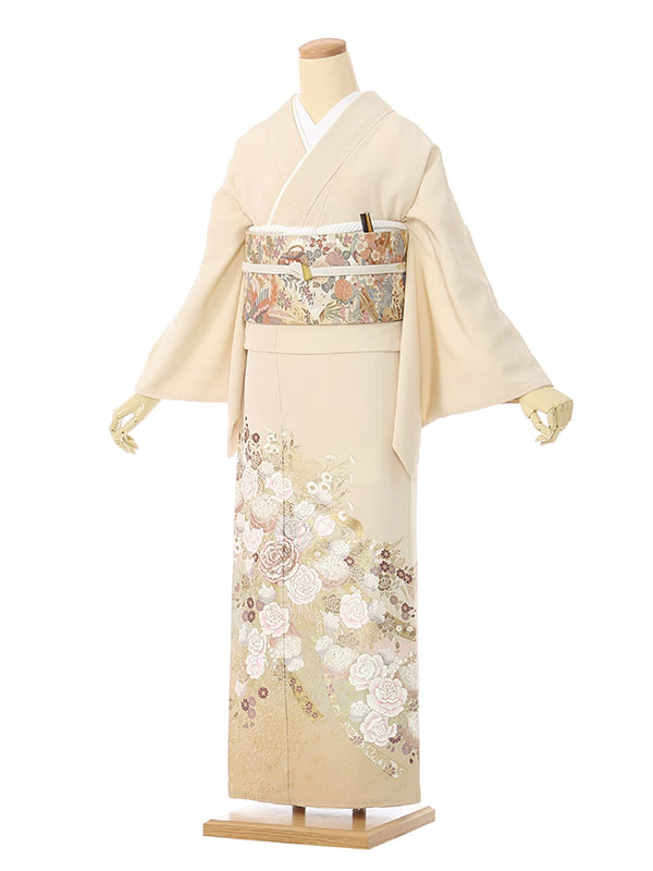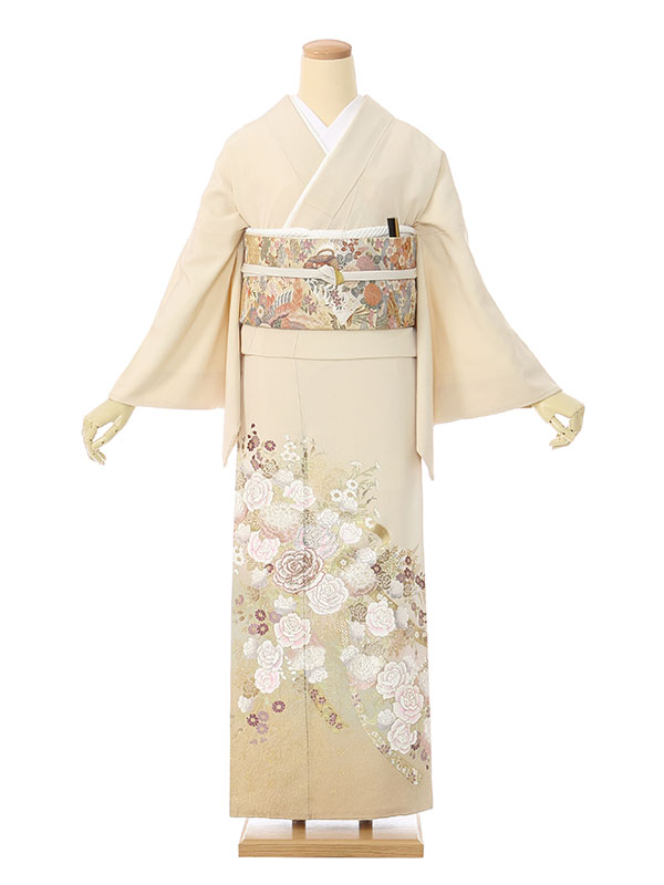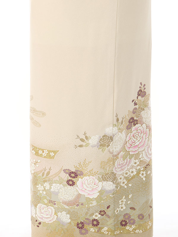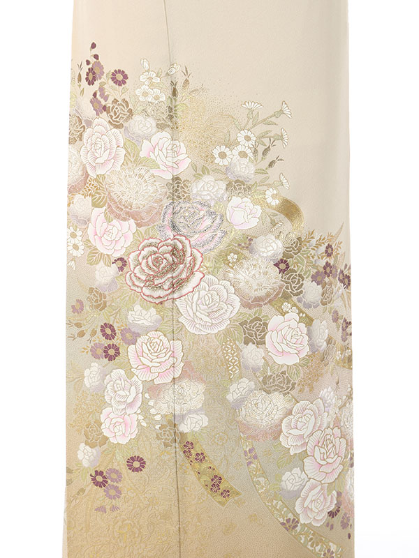 色留袖: クリーム地 裾ベージュ バラの花束