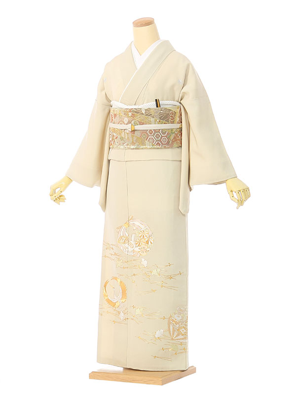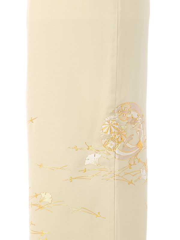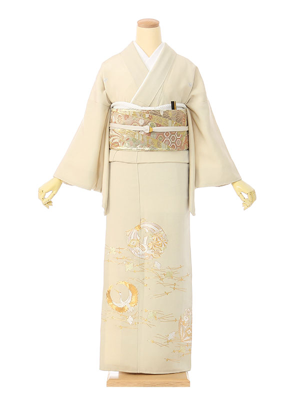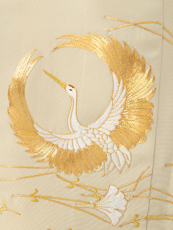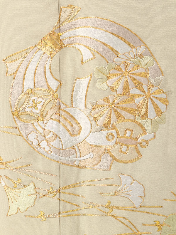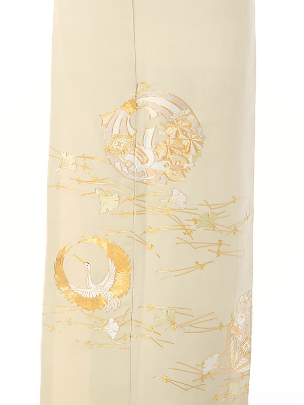 色留袖: 生成り鶴松葉宝尽くし総刺繍