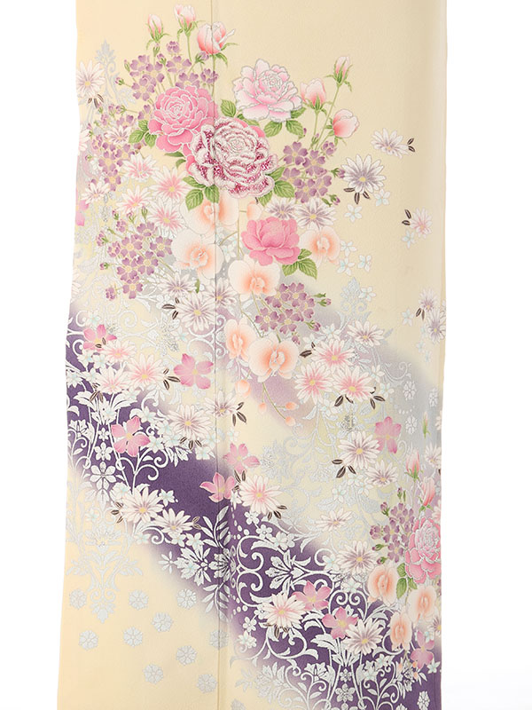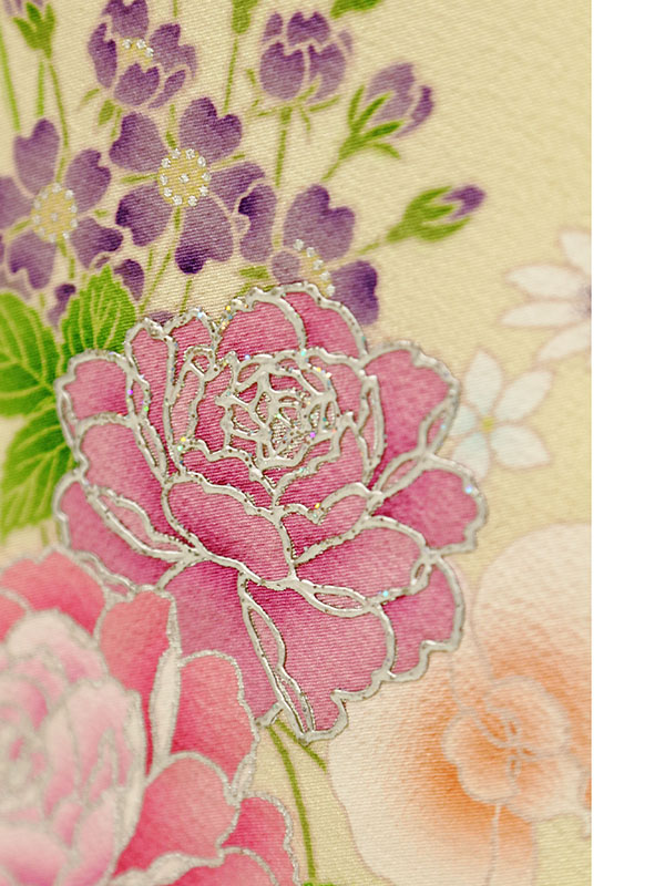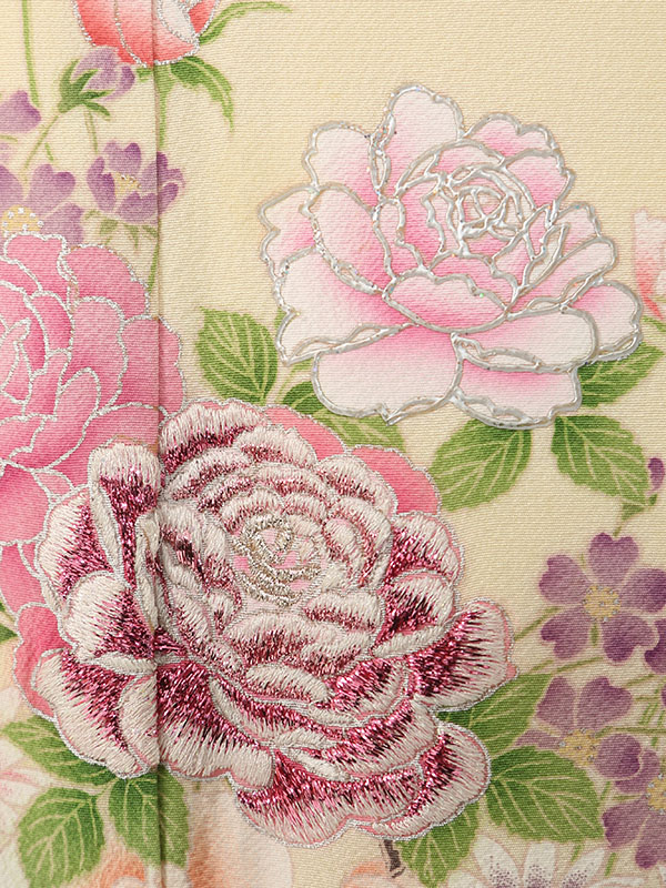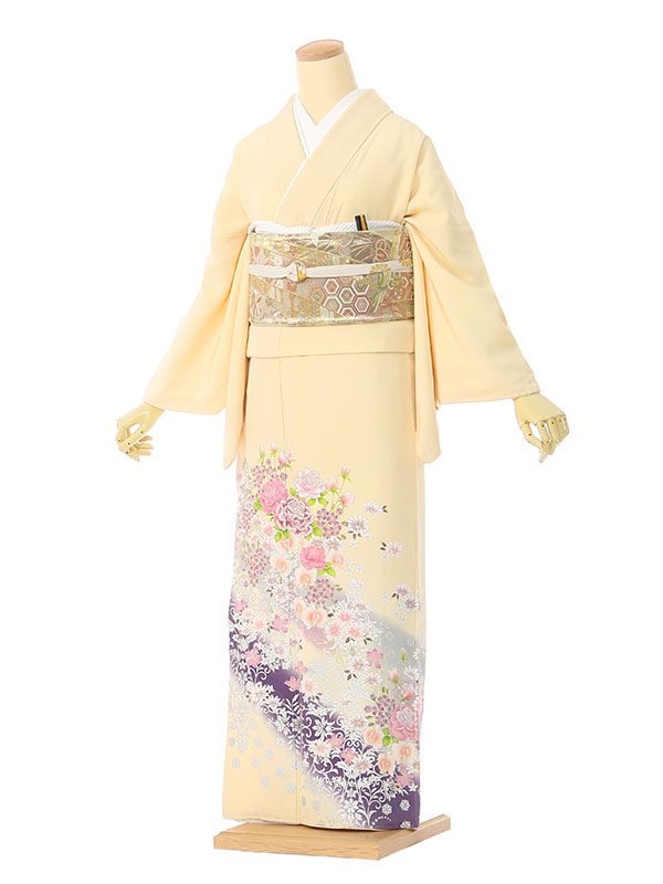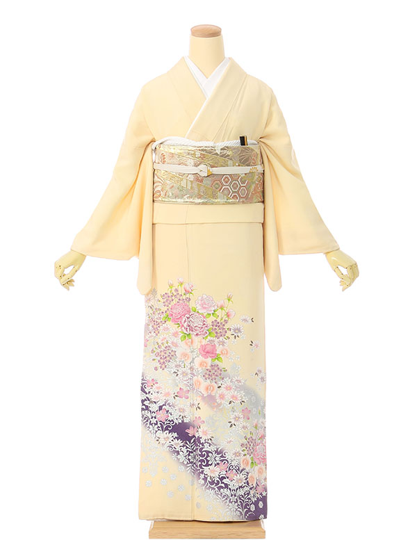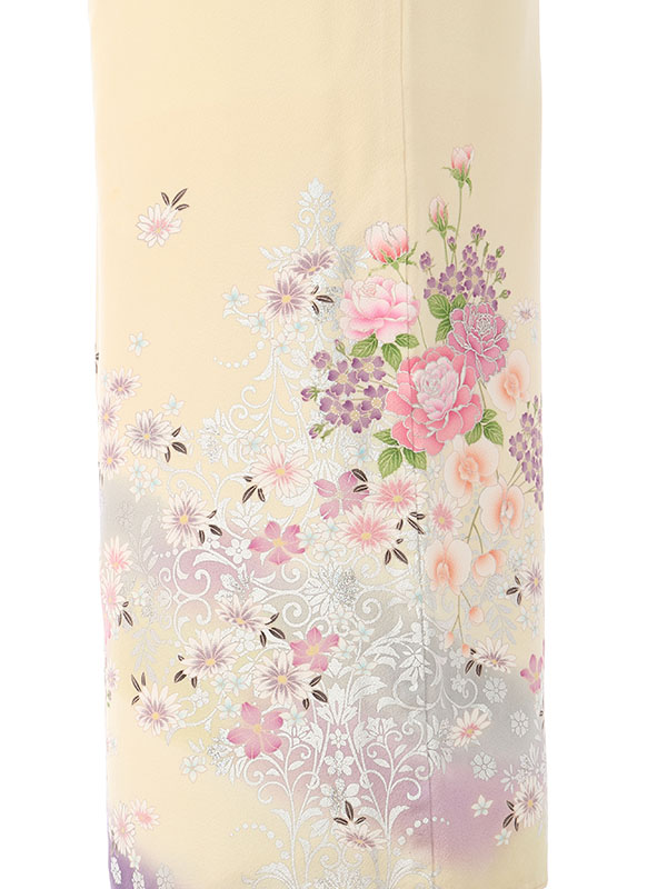 色留袖: クリーム地 薔薇 ラン 銀彩