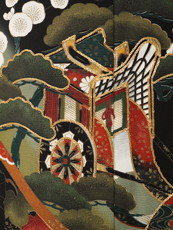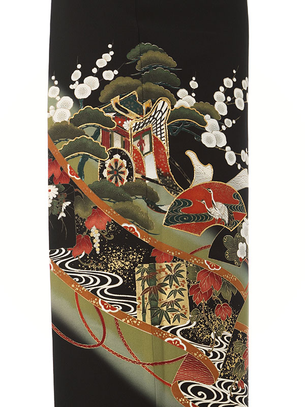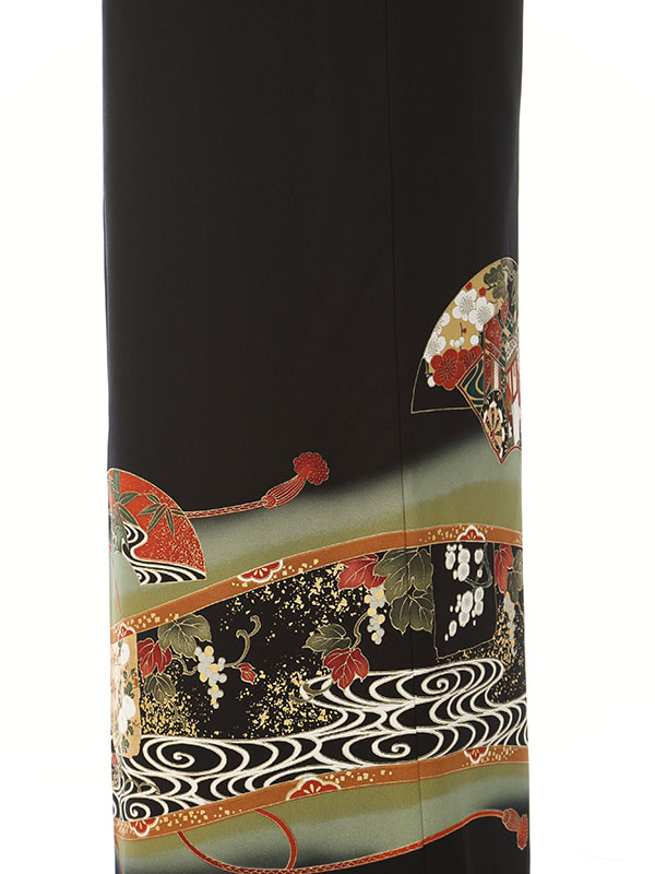 黒留袖: 緑地 太い道長 扇面 御所車
