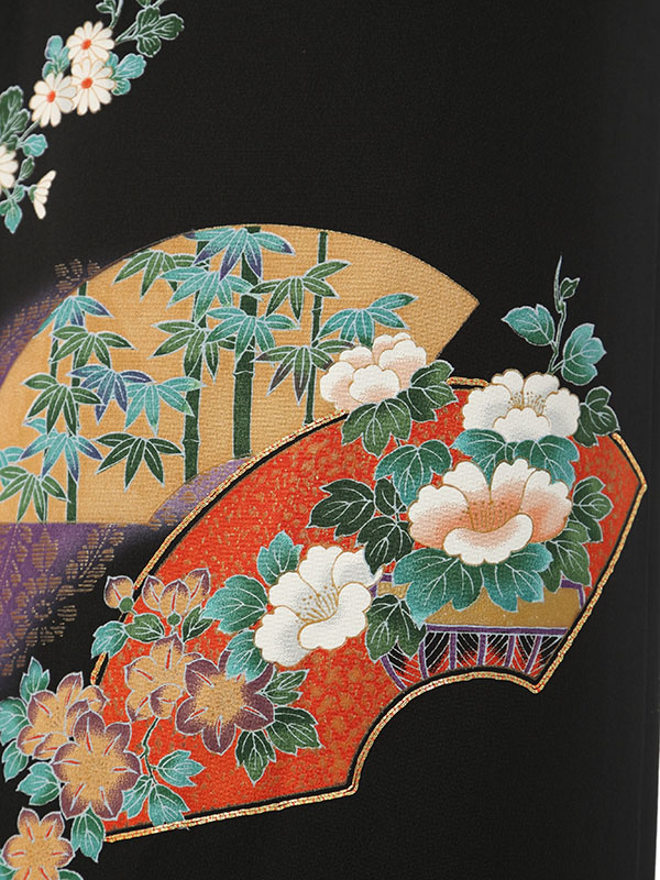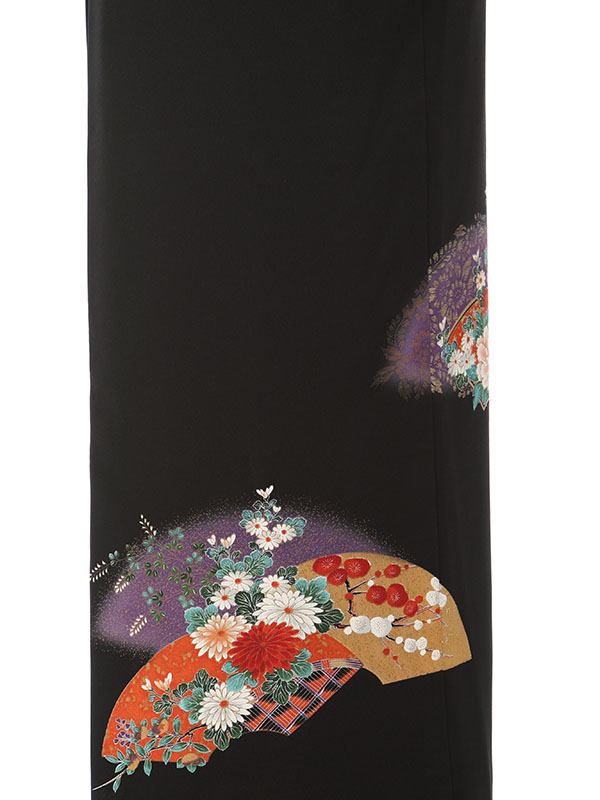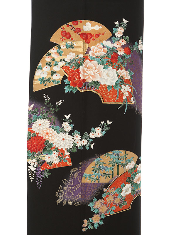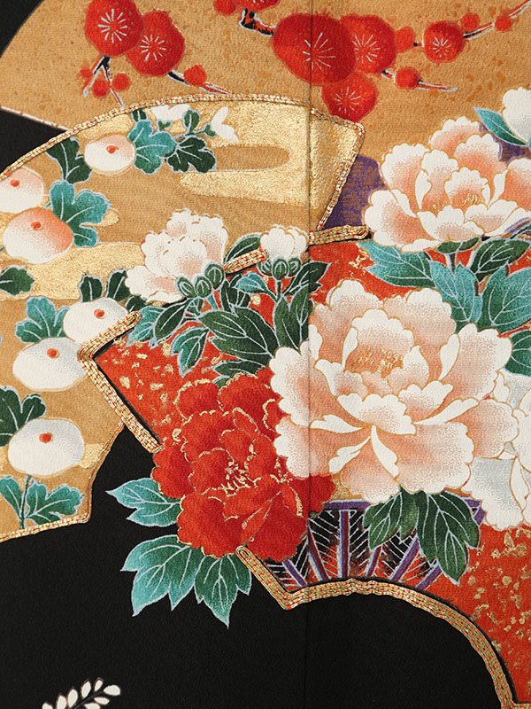黒留袖: 赤地 牡丹 扇面柄
