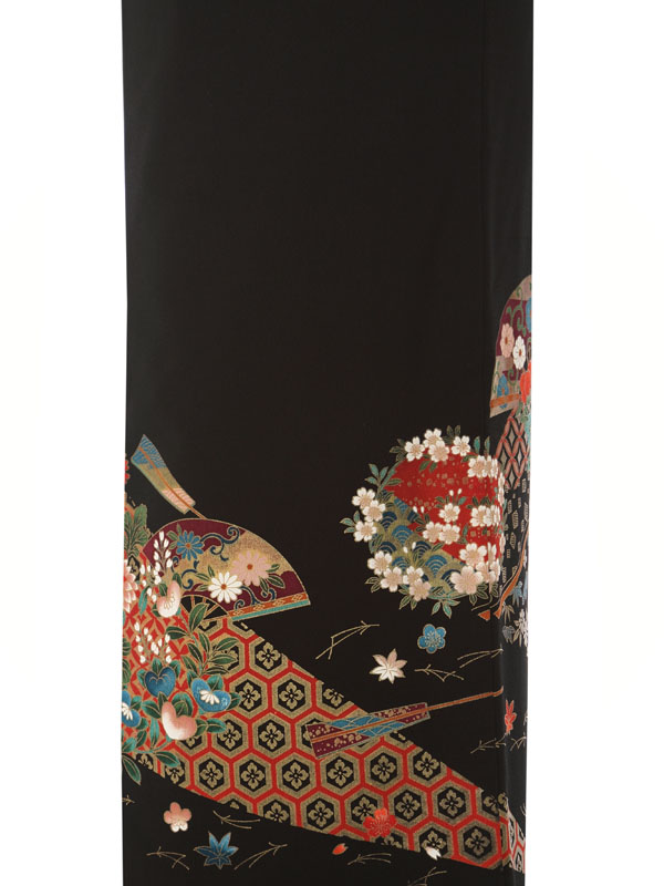 黒留袖: 花つぼ 扇子 亀甲柄