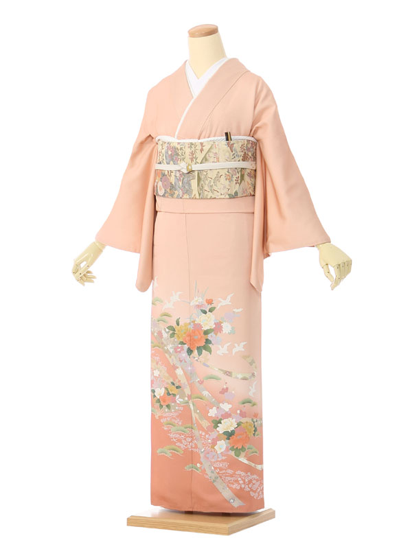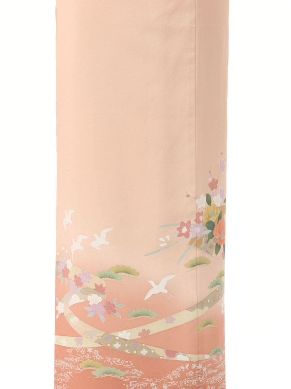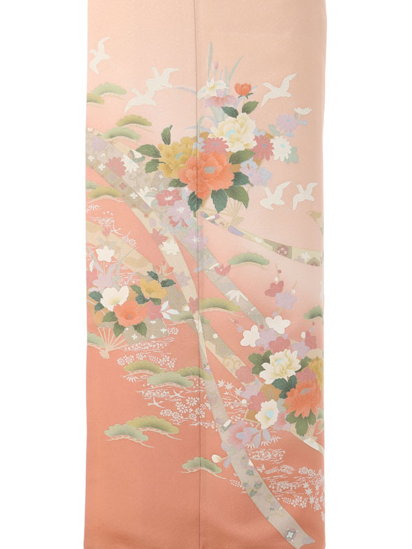 色留袖: ピンク地裾濃いぼかし道長扇子に小花