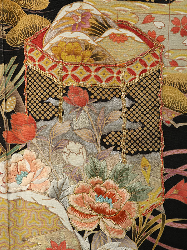※「五三桐」の紋が背紋1つ、前胸紋2つ、後ろ袖紋2つの5つ紋で入っております。