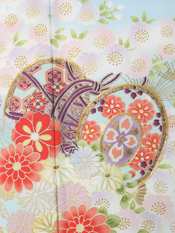 ※背紋1つ、前胸紋2つ、後ろ袖紋2つの五つ紋が入っております。