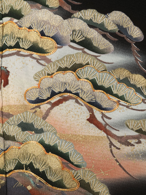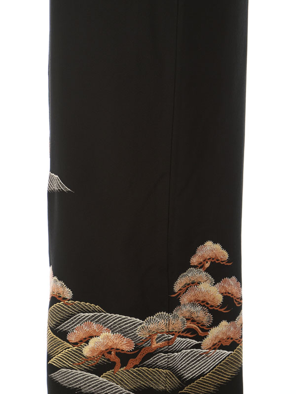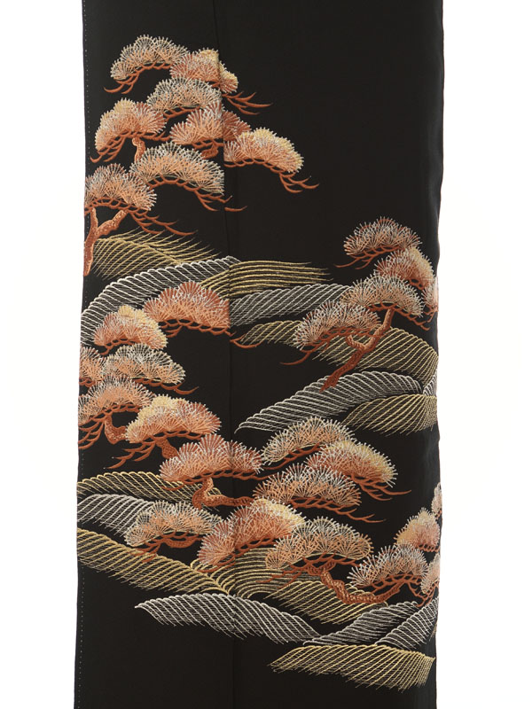 黒留袖: 金銀さざ波茶老松(刺繍)