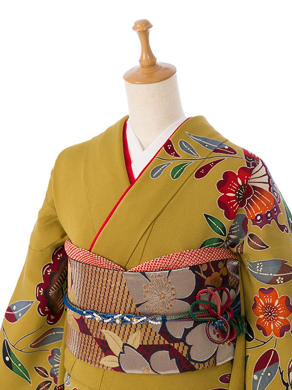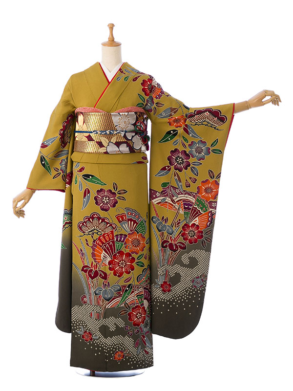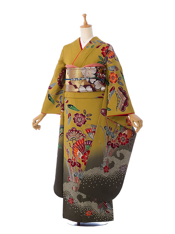 振袖|紅型|からし系|対応身長:150-160cm|サイズ:7号-13号|3S537