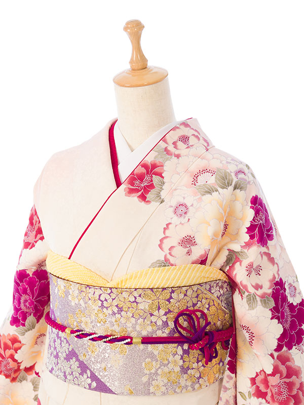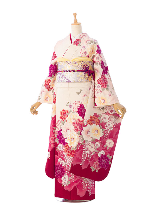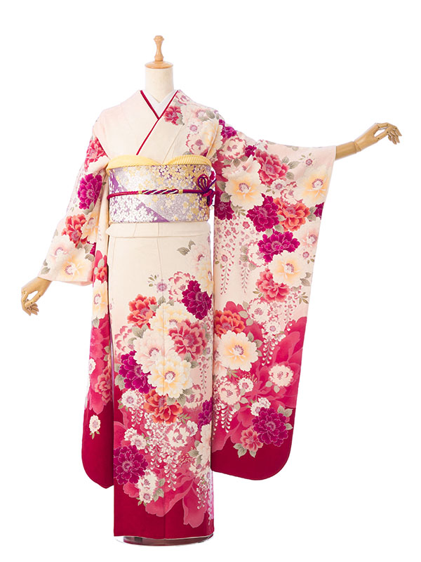振袖|白系|桜 牡丹 |6S718|対応身長:153-165cm|サイズ:7号-13号
