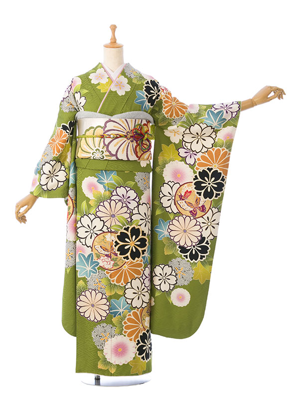 振袖|緑系|桜 |1S2139|対応身長:153-165cm|サイズ:7号-13号