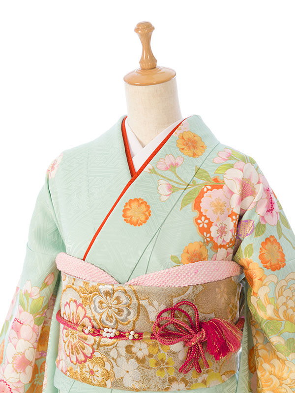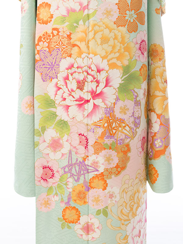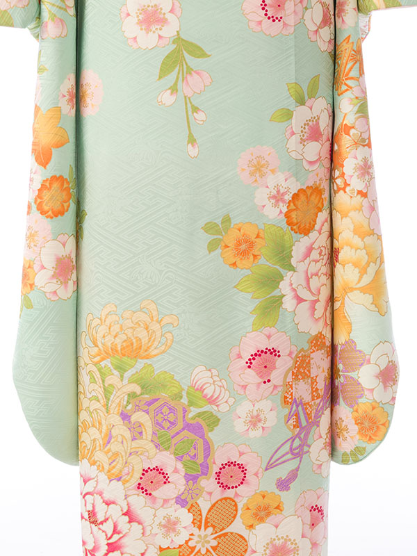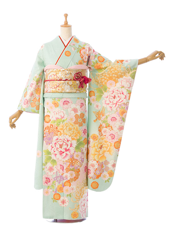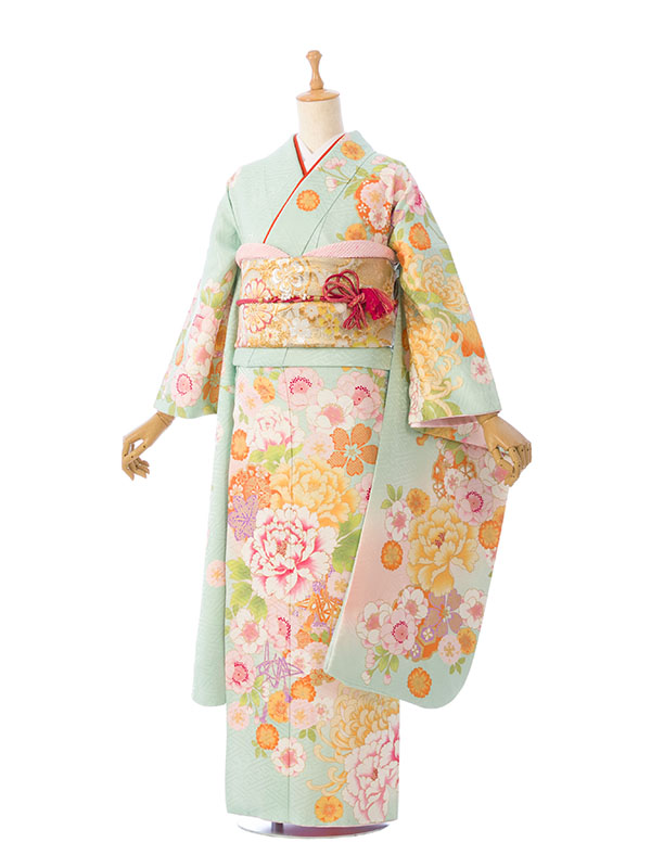 振袖|緑系|桜 牡丹 |1S1661|対応身長:145-155cm|サイズ:7号-13号