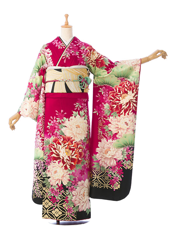 振袖|ピンク系|桜 牡丹 |1S2228|対応身長:153-165cm|サイズ:7号-13号