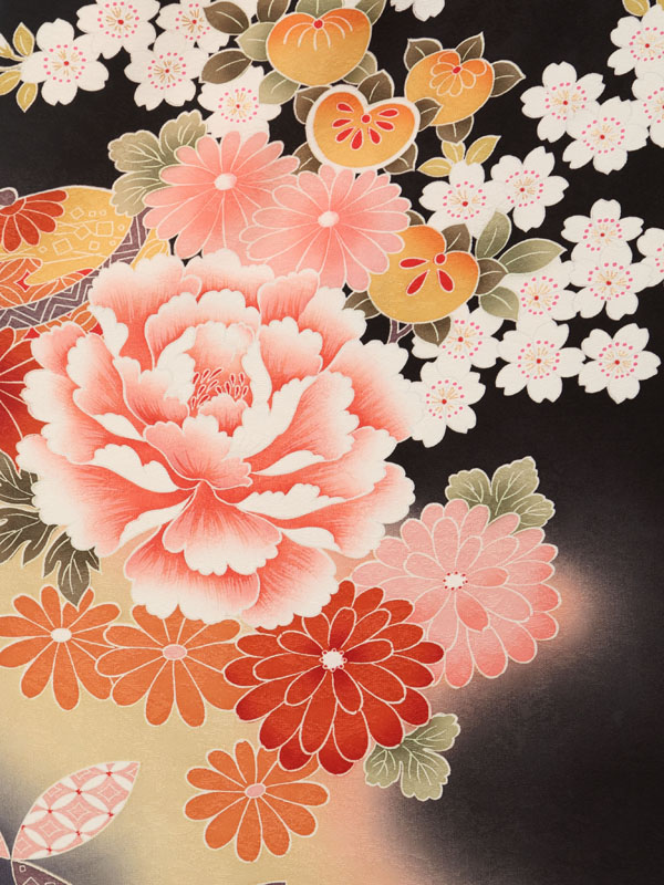 IKKO 黒地 牡丹 桜 菊