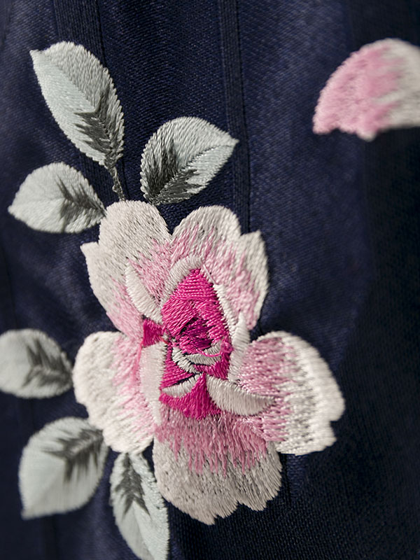 青紫ぼかし矢絣 薔薇刺繍紐レース