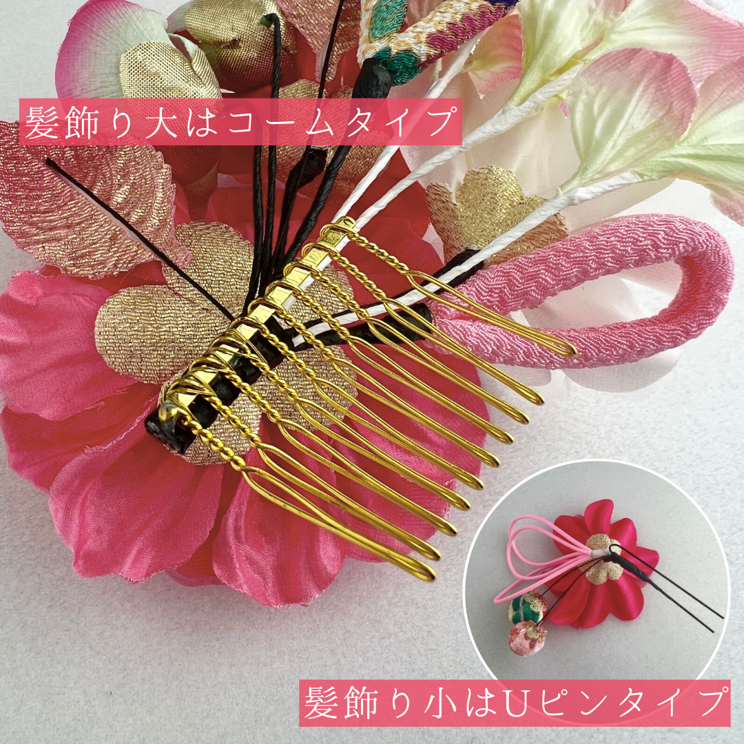 髪飾り小:縦約8cm×横約9cm×高さ約6cm(Uピン仕様)