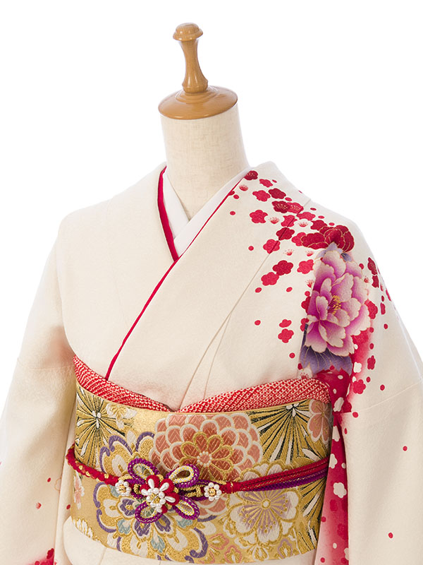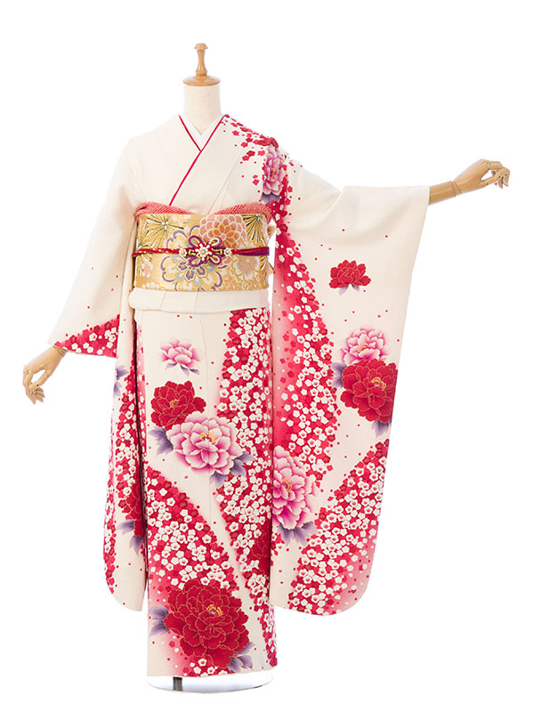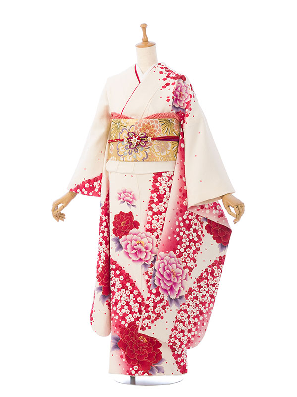 振袖|白系| 牡丹 |6S514|対応身長:150-160cm|サイズ:7号-13号