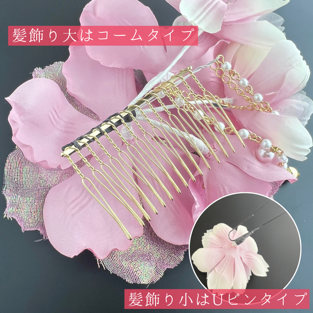髪飾り小:縦約6cm×横約6cm×高さ約3cm(Uピン仕様)