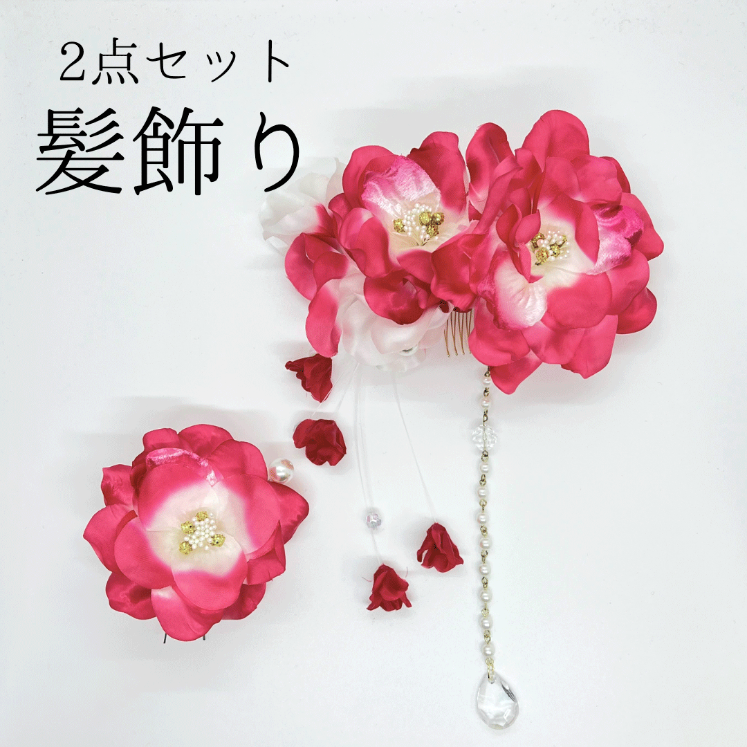 幾重にも花びらを重ね、ボリュームのある髪飾り