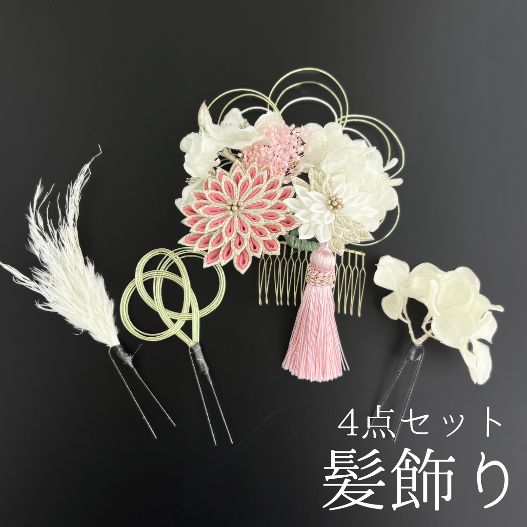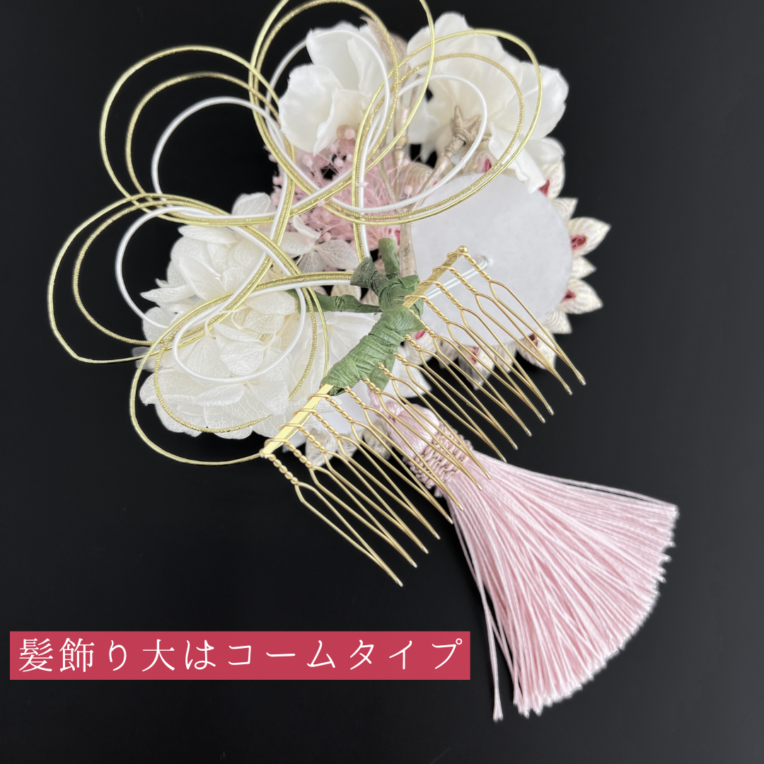 トレンドの水引やタッセル、プリザーブドフラワーを使用したおしゃれな髪飾り