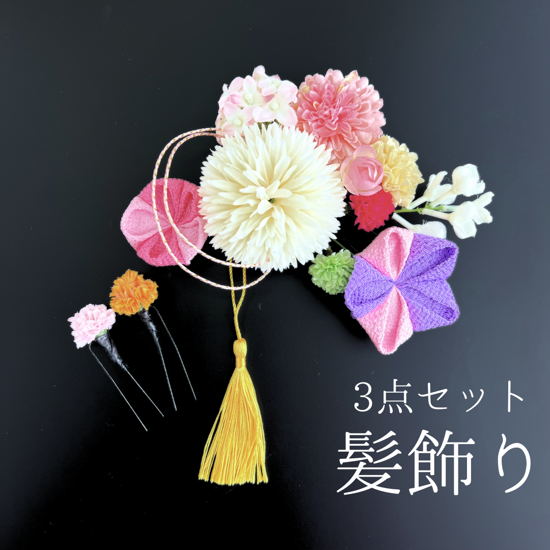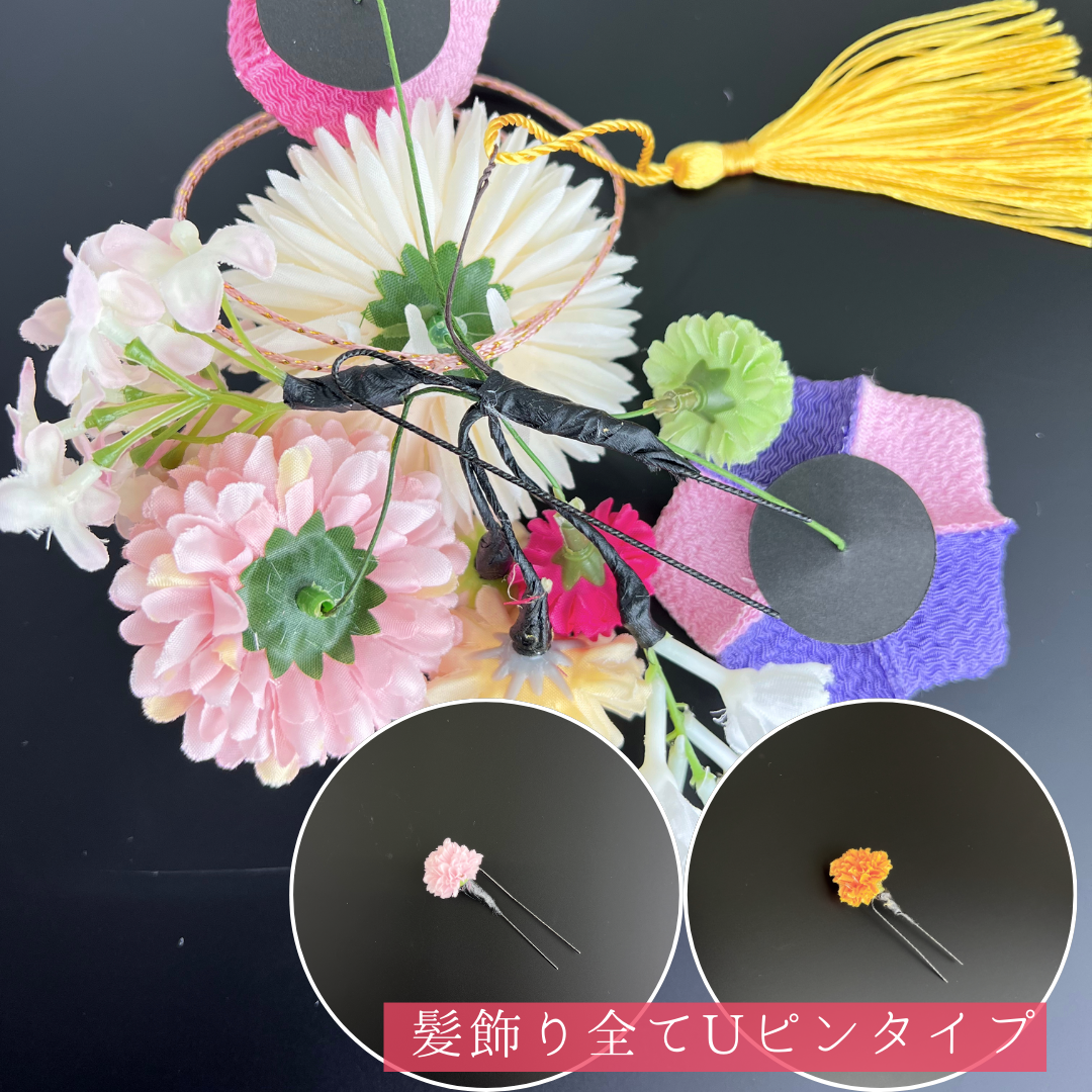 淡いピンクのお花、つまみ細工のお花が可愛らしい印象にピッタリ!