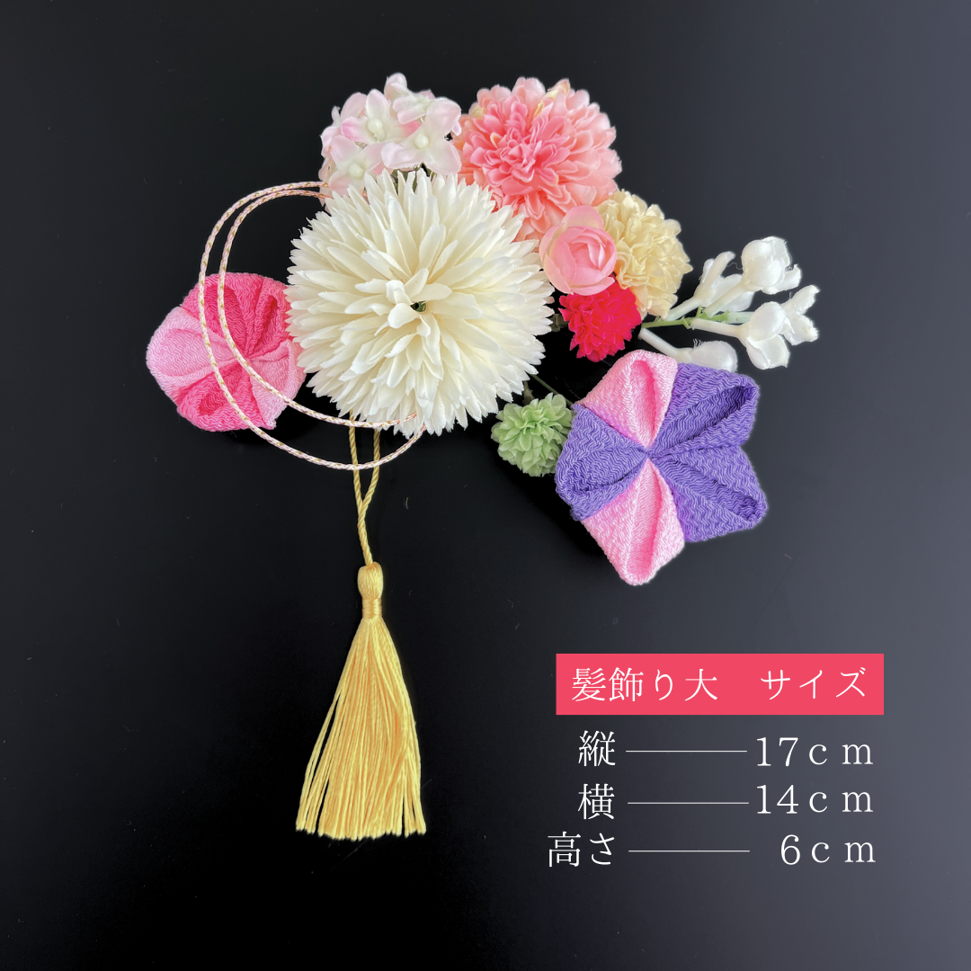 髪飾り大:縦約17cm×横約14cm×高さ約6cm(Uピン仕様)