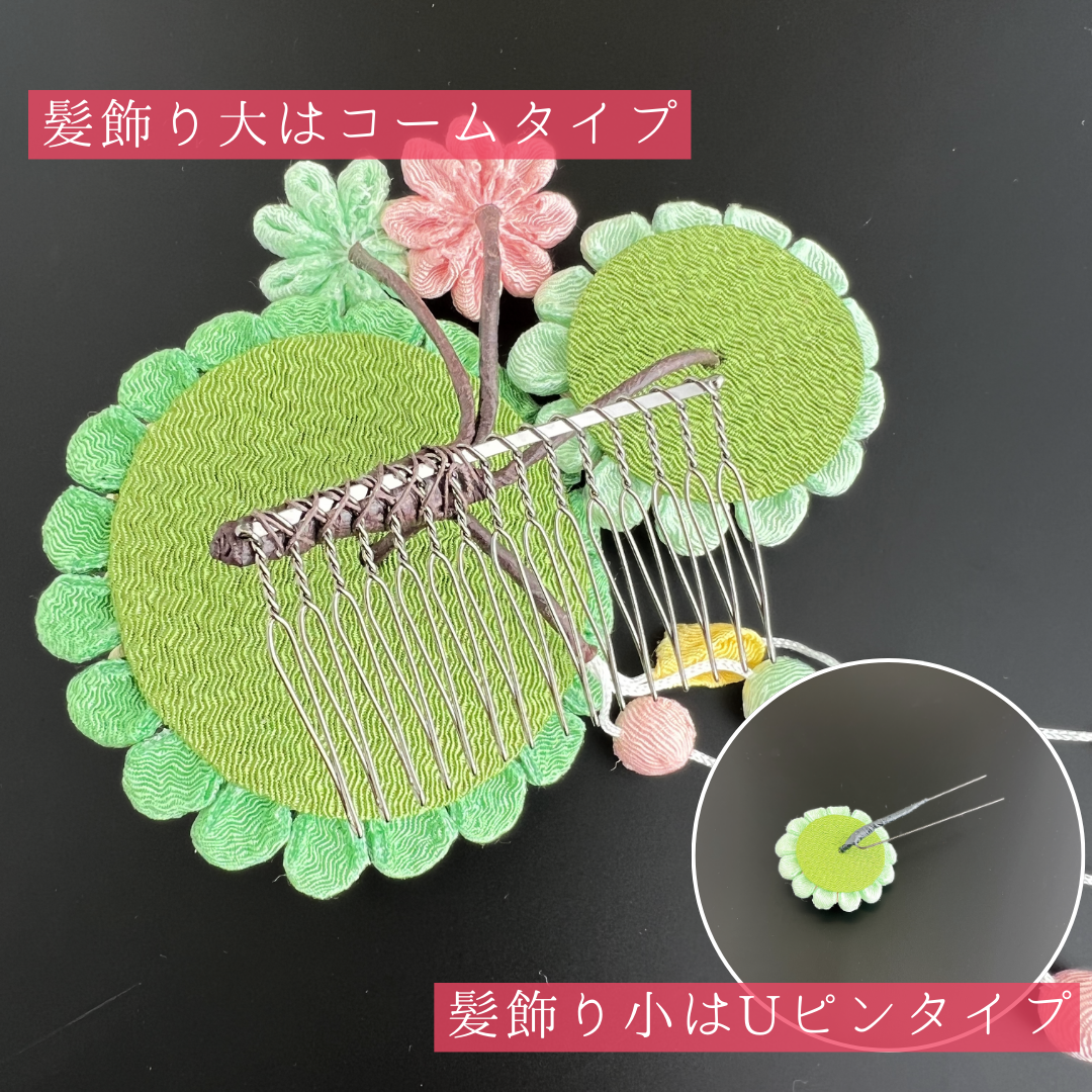 髪飾り小:縦約5cm×横5cm×高さ約2.5cm(Uピン仕様)