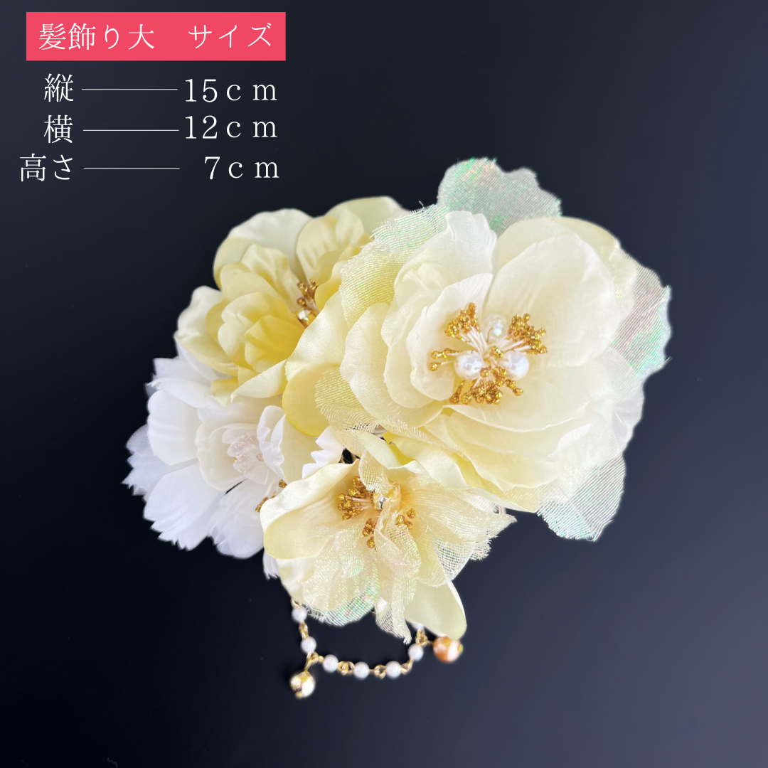 髪飾り大:縦約15cm×横約12cm×高さ約7cm(コーム仕様)